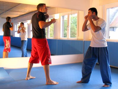 Trainingspartner verkürzt die Distanz und greift