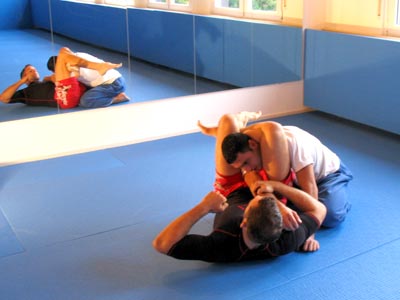 befindet sich in der Guardposition und umklammer seinen