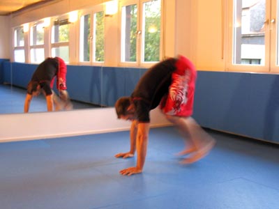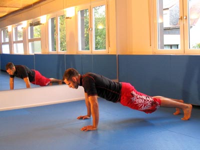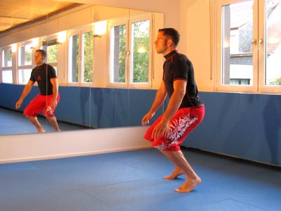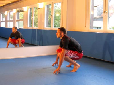 Und beendet den zweiten Teil der Kniebeuge. Jetzt ist