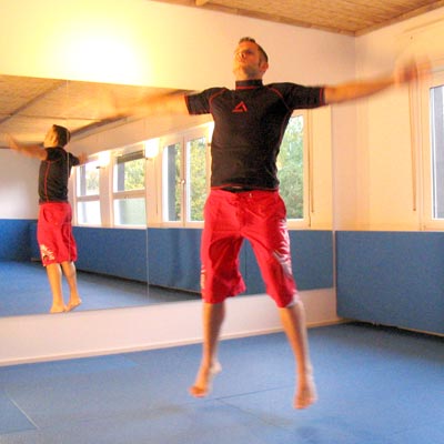 3 Sobald man ankommt springt man zurück in die Ausgangsposition..